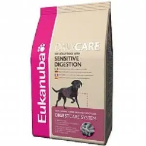 מזון מלא לכלבים בוגרים עם נטייה לבעיות בדרכי העיכול: מזון לכלבים בוגרים בעלי נטייה מולדת לרגישות ספציפית או עם היסטוריה מוקדמת של רגישות בדרכי העיכול,נטיה לצואה רכה, גזים ואפיזודות של הקאות. מזון זה מכיל רכיבים תזונתיים מיוחדים המחזקים את עמידותו של הכלב בפני נטייתו לפתח רגישות בדרכי העיכול שכיחות הרגישות בקרב כלבים כ-29% מזון מועשר בסיבים פרהביוטיים FOSופולפת סלק סוכר התומכים בפלורת החיידקים המועילים ומקדמים מערכת מעיים בריאה . מבוסס על עוף ואורז לנעכלות קלה וגבוהה. אחוז שומן נמוך 13% לעיכול נוח.
