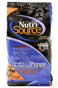 מזון סופר פרימיום לגורי כלבים קטנים ובינונייםרכיבים: בשר עוף מיובש, בשר עוף, אורז חום, אורז, דגים, שיבולת שועל, חמרי טעם מעופות, ציפת סלק, זרעי פשתן, שומן עופות (משומר ע""י טוקופרול – מקור לויטמין E, חומצה ציטרית ורוזמרין), רסק עגבניות, ביצים, מיצוי כבד עופות, שמרים, ויטמינים, מינרלים, פרוביוטיקה (חיידקי סקרומיצס, אנטרוקוקוס, לקטובצילוס, בצילוס סבטיליס ופטריות מסוג אספרגילוס, טריכודרמה), גלוקוזאמין, כונדרויטין תמצית יוקה שידיגרה, תמצית רוזמרין.. מיוצר על פי תקן AAFCO האמריקאי." |